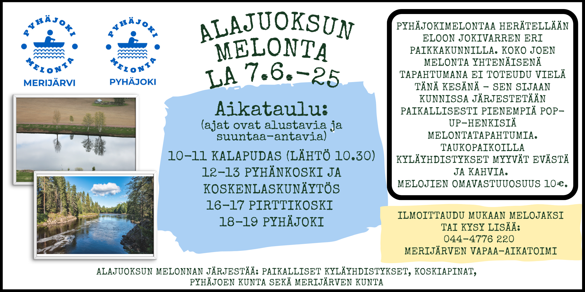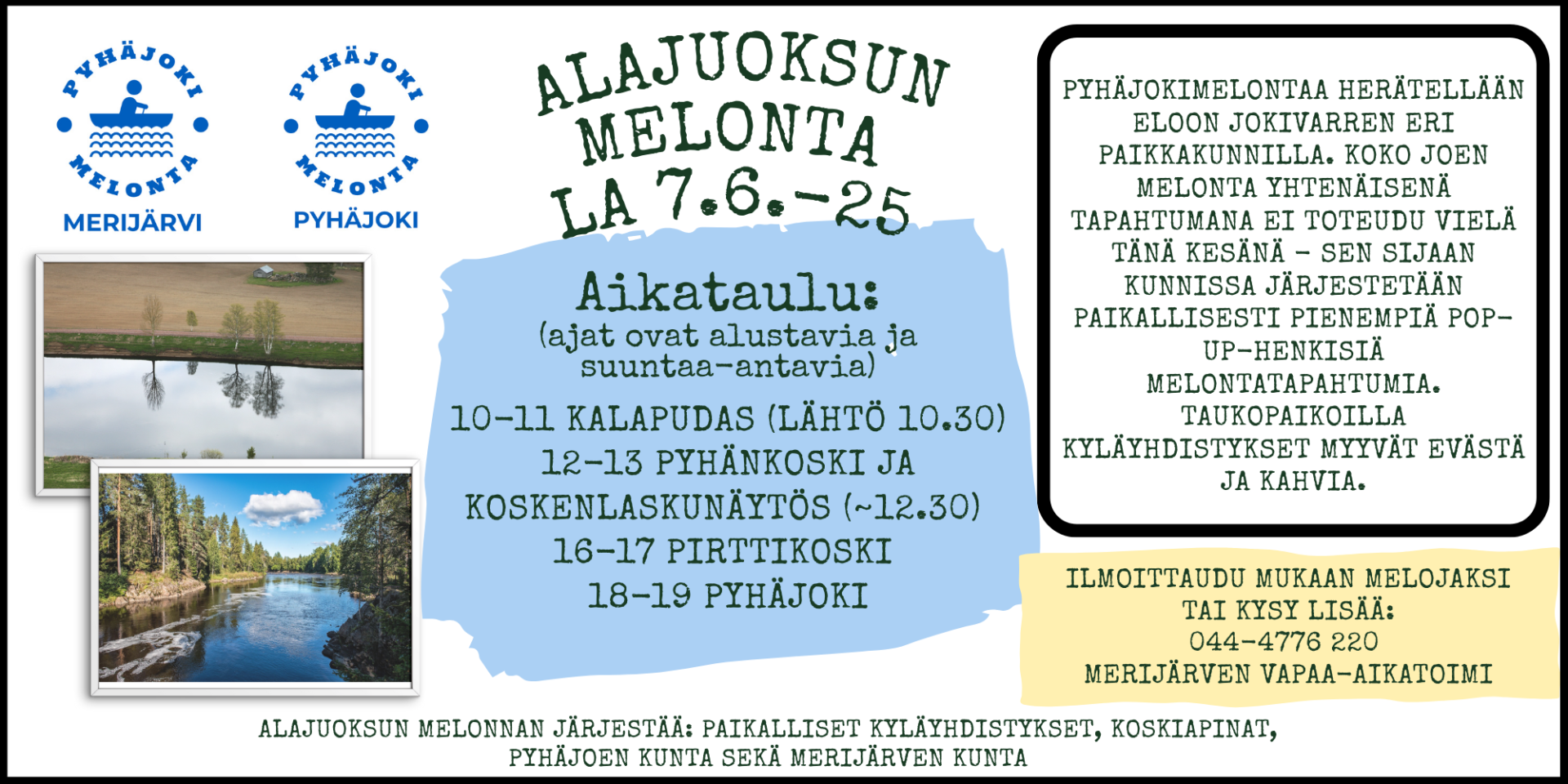 Pyhäjokimelontaa etkoilla Merijärvellä ja Pyhäjoella lauantaina 7.6.2025!