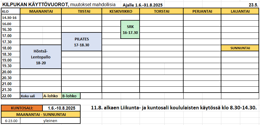 Kuntosalivuorot syksy 2025 (päiv. 30.10.25)